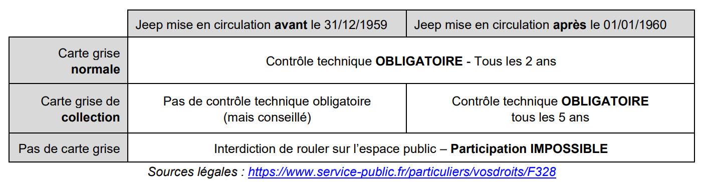 Une vérification administrative de la Jeep engagée aura lieu le Samedi 30 mai avant le départ.
